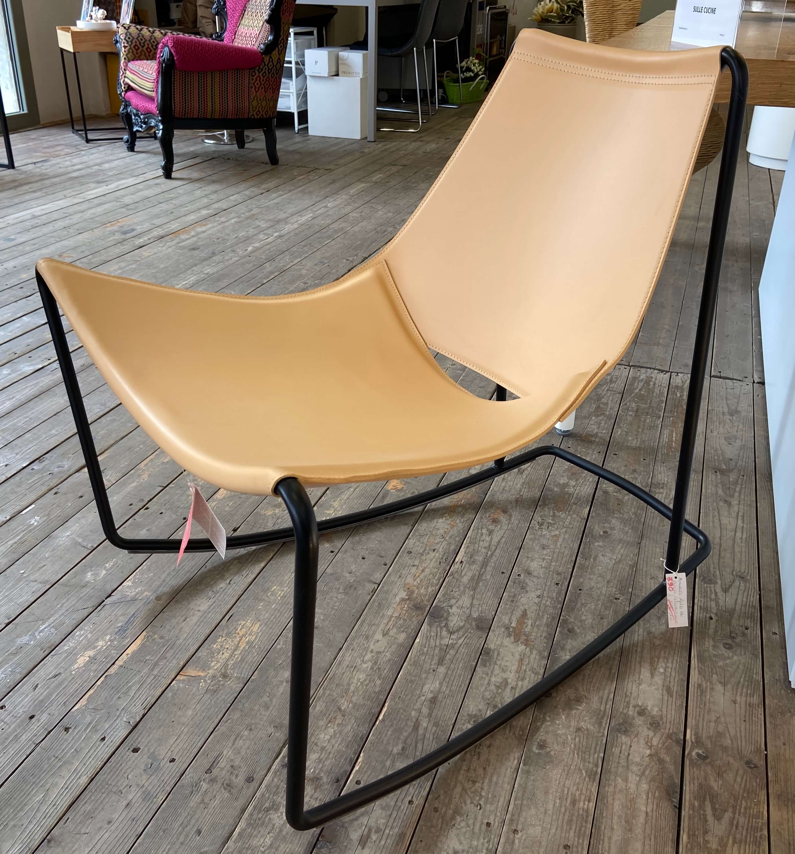 Dondolo Cuoio Base Metallo Nero